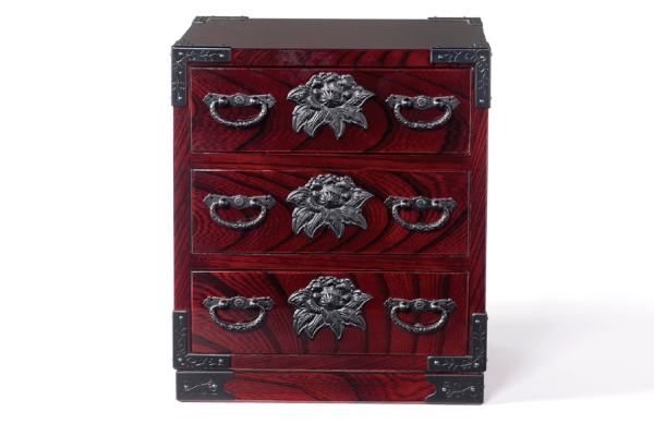 バランスのよい三段の引出しは、デスク上で筆記具やハガキなどの収納に活躍。和モダンインテリアの引き立て役にも。